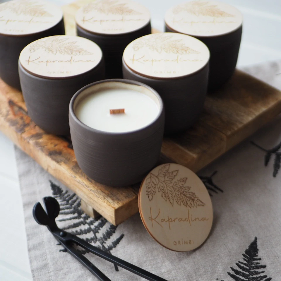 Vychutnejte si svěží atmosféru vůní z kapradin. Naše KAPRADINA je ručně vyrobená svíčka ze sójového vosku a přírodními silicemi. Keramický obal svíčky je ručně vytočený na hrnčířském kruhu, proto se může rozměr u každé svíčky nepatrně lišit. Vypálenou svíčku můžete dále použít jako keramický kalíšek na Vaše domácí cappuccino (vnitřek kalíšku je světlý a glazovaný, vnějšek je naopak hrubý a matný). Namíchat tu správnou „lesní“ vůni není žádná hračka, tato svíčka má v sobě ihned několik složek, které jsou jemné a při několikahodinovém hoření Vám její vůně není nepříjemně silná, ale naopak povzbudí smysly a uvolní mysl. Ponořte se s námi do hloubky svěžího lesa.